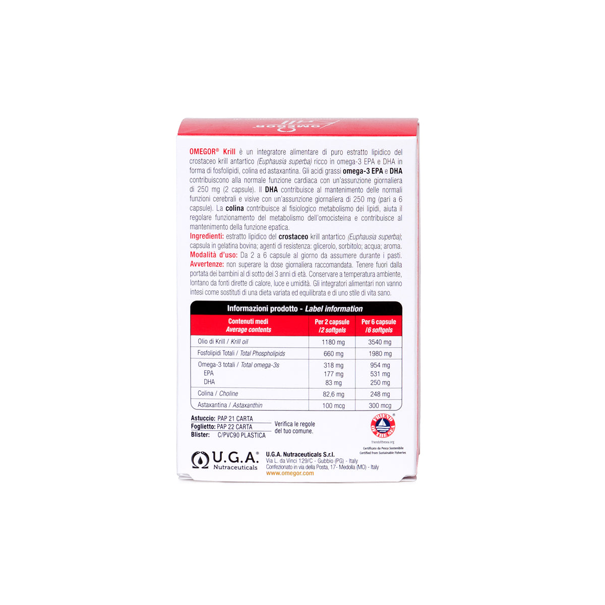 Omega-3 EPA and DHA from Antarctic krill (Euphausia superba), a crustacean, are bound to phospholipids and are therefore much more easily absorbed by cell membranes, especially those of the brain. OMEGOR ® Krill is 100% pure krill oil, which is also rich in astaxanthin, a powerful antioxidant, and choline, a nutrient essential for the maintenance of normal liver function.