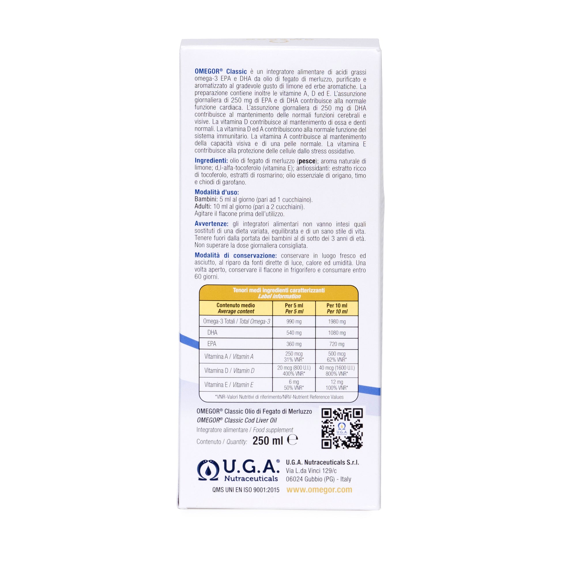 Omegor Classic - Aceite de Hígado de Bacalao (CLO) tiene increíbles beneficios para la salud porque contiene cuatro nutrientes importantes: Omega-3 (EPA/DHA) y vitaminas D, A y E. Omegor Classic está purificado y saborizado, con un agradable sabor a limón y hierbas naturales que ha sido premiado por el International Taste Institute.