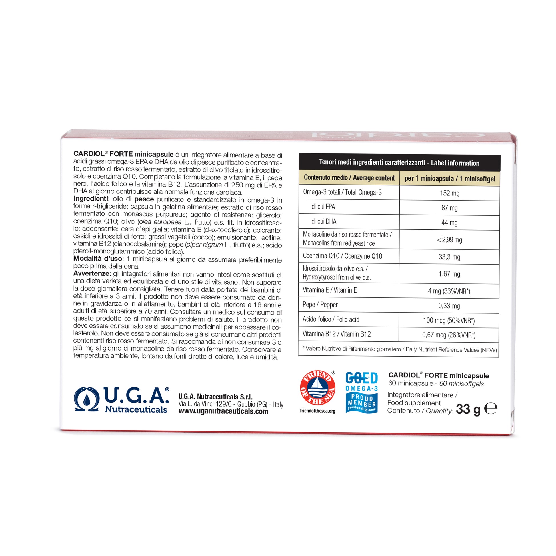Cardiol Forte 迷你胶囊是一种膳食补充剂,含有来自高度纯化和浓缩鱼油的 Omega-3 脂肪酸 EPA 和 DHA、红曲发酵产生的莫纳可林,以及标准化为羟基酪醇的橄榄提取物,有助于保护 LDL 胆固醇免受氧化。配方还含有维生素 E、辅酶 Q10、黑胡椒、叶酸和维生素 B12。
